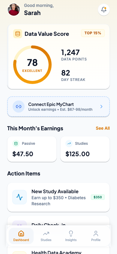 Your records sit in pieces across hospitals, labs, and apps you haven’t opened in years. The studies you joined never tell you what they learned. We’re building the patient app where data sovereignty is the default — you control who sees what, see what they did with it, and share in what your contribution earned.